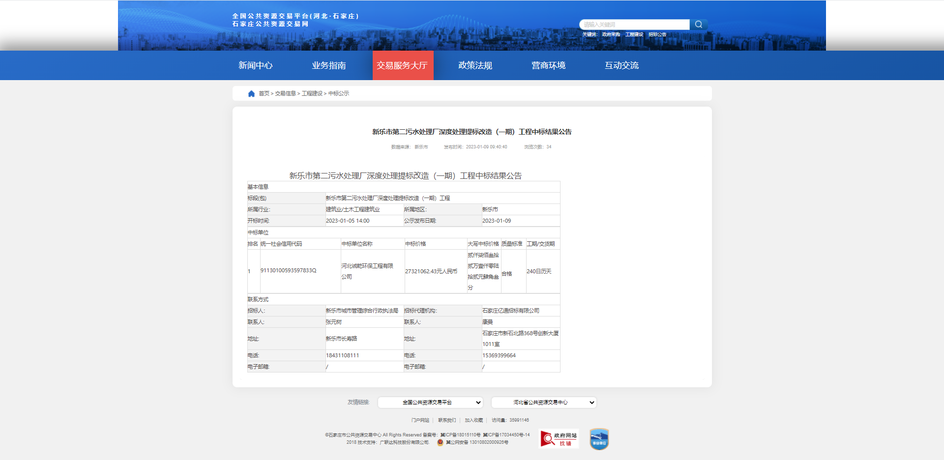 2023年1月5日,由新樂市城市管理綜合行政執(zhí)法局招標的“新樂市第二污水處理廠深度處理提標改造(一期)工程項目”,我公司憑借良好的信譽、雄厚的技術實力,加之優(yōu)秀...